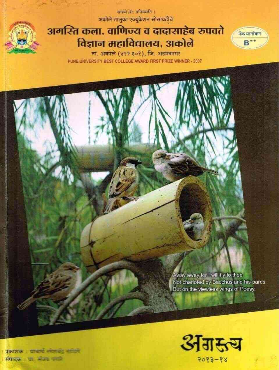 खांडगे, रमेशचंद्र and पगारे, संजय, “अगस्त्य २०१३– १४,” Exibitions@Agasti Knowledge Resource Centre, accessed March 29, 2026, https://dl.agasticollege.edu.in/items/show/34.